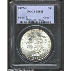<TR><TD width="100%"><TABLE cellSpacing=1 cellPadding=3 width="100%" border=0><TBODY><TR><TD width="100%" bgColor=#79735c><FONT face=arial color=#ffffff size=3><B>Description</B> </FONT></TD></TR><TR><TD width="100%" bgColor=#ffffff><FONT face=arial size=2><B>1897-S $1 MS65 PCGS.</B></I> A well struck and lightly toned Gem with potent luster and an especially pleasing reverse. An interesting raised die line (as produced) passes through the designer's monogram on the bust truncation. </FONT></TD></TR></TBODY></TABLE></TD></TR></TBODY></TABLE><BR><A name=PricesRealized></A><TABLE cellSpacing=0 cellPadding=0 width="100%" bgColor=#000000 border=0><TBODY><TR><TD width="100%"><TABLE cellSpacing=1 cellPadding=3 width="100%" border=0><TBODY><TR><TD width="100%" bgColor=#79735c><A name=PR><FONT face=arial color=#ffffff size=3><B>Previous Prices from Heritage Auctions</B> </FONT></A></TD></TR><TR><TD bgColor=#f6f6ed><TABLE cellSpacing=0 cellPadding=0 width="100%" border=1><TBODY><TR><TD align=middle width="33%"><B>Date</B></TD><TD align=middle width="33%"><B>Service</B></TD><TD align=middle width="33%"><B>Price</B></TD></TR><TR bgColor=whitesmoke><TD width="33%"><B>03/01/2003</B></TD><TD width="33%">PCGS</TD><TD width="33%">$471.50</TD></TR><TR bgColor=whitesmoke><TD width="33%"><B>02/25/2003</B></TD><TD width="33%">PCGS</TD><TD width="33%">$402.50</TD></TR><TR bgColor=whitesmoke><TD width="33%"><B>04/15/2003</B></TD><TD width="33%">PCGS</TD><TD width="33%">$414.00</TD></TR><TR bgColor=whitesmoke><TD width="33%"><B>03/11/2003</B></TD><TD width="33%">PCGS</TD><TD width="33%">$437.00</TD></TR><TR bgColor=whitesmoke><TD width="33%"><B>12/03/2002</B></TD><TD width="33%">PCGS</TD><TD width="33%">$448.50</TD></TR><TR bgColor=whitesmoke><TD width="33%"><B>10/01/2002</B></TD><TD width="33%">PCGS</TD><TD width="33%">$381.80</TD></TR><TR bgColor=whitesmoke><TD width="33%"><B>09/30/2002</B></TD><TD width="33%">PCGS</TD><TD width="33%">$437.00</TD></TR><TR bgColor=whitesmoke><TD width="33%"><B>09/24/2002</B></TD><TD width="33%">PCGS</TD><TD width="33%">$391.00</TD></TR><TR bgColor=whitesmoke><TD width="33%"><B>09/28/2002</B></TD><TD width="33%">PCGS</TD><TD width="33%">$488.75</TD></TR><TR bgColor=whitesmoke><TD width="33%"><B>09/28/2002</B></TD><TD width="33%">PCGS</TD><TD width="33%">$460.00</TD></TR><TR bgColor=whitesmoke><TD width="33%"><B>07/29/2002</B></TD><TD width="33%">PCGS</TD><TD width="33%">$402.50</TD></TR><TR bgColor=whitesmoke><TD width="33%"><B>06/04/2002</B></TD><TD width="33%">PCGS</TD><TD width="33%">$402.50</TD></TR><TR bgColor=whitesmoke><TD width="33%"><B>06/08/2002</B></TD><TD width="33%">PCGS</TD><TD width="33%">$437.00</TD></TR><TR bgColor=whitesmoke><TD width="33%"><B>03/05/2002</B></TD><TD width="33%">PCGS</TD><TD width="33%">$379.50</TD></TR><TR bgColor=whitesmoke><TD width="33%"><B>06/06/1997</B></TD><TD width="33%">PCGS</TD><TD width="33%">$327.75</TD></TR><TR bgColor=whitesmoke><TD width="33%"><B>06/01/1996</B></TD><TD width="33%">PCGS</TD><TD width="33%">$330.00</TD></TR><TR bgColor=whitesmoke><TD width="33%"><B>08/14/1995</B></TD><TD width="33%">PCGS</TD><TD width="33%">$330.00</TD></TR><TR bgColor=whitesmoke><TD width="33%"><B>03/12/1993</B></TD><TD width="33%">PCGS</TD><TD width="33%">$412.50</TD></TR><TR bgColor=whitesmoke><TD width="33%"><B>01/06/1993</B></TD><TD width="33%">PCGS</TD><TD width="33%">$302.50</TD></TR><TR bgColor=whitesmoke><TD width="33%"><B>01/06/1993</B></TD><TD width="33%">PCGS</TD><TD width="33%">$308.00</TD></TR><TR bgColor=whitesmoke><TD width="33%"><B>08/15/2000</B></TD><TD width="33%">PCGS</TD><TD width="33%">$430.00</TD></TR><TR bgColor=whitesmoke><TD width="33%"><B>01/07/2000</B></TD><TD width="33%">PCGS</TD><TD width="33%">$373.75</TD></TR><TR bgColor=whitesmoke><TD width="33%"><B>09/25/1999</B></TD><TD width="33%">PCGS</TD><TD width="33%">$471.50</TD></TR><TR bgColor=whitesmoke><TD width="33%"><B>06/01/1996</B></TD><TD width="33%">PCGS</TD><TD width="33%">$385.00</TD></TR><TR bgColor=whitesmoke><TD width="33%"><B>05/05/2000</B></TD><TD width="33%">PCGS</TD><TD width="33%">$414.00</TD></TR><TR bgColor=whitesmoke><TD width="33%"><B>09/23/1998</B></TD><TD width="33%">PCGS</TD><TD width="33%">$412.50</TD></TR><TR bgColor=whitesmoke><TD width="33%"><B>07/03/2001</B></TD><TD width="33%">PCGS</TD><TD width="33%">$400.00</TD></TR><TR bgColor=whitesmoke><TD width="33%"><B>05/29/2001</B></TD><TD width="33%">PCGS</TD><TD width="33%">$390.00</TD></TR><TR bgColor=whitesmoke><TD width="33%"><B>06/02/2001</B></TD><TD width="33%">PCGS</TD><TD width="33%">$460.00</TD></TR><TR bgColor=whitesmoke><TD width="33%"><B>04/17/2001</B></TD><TD width="33%">PCGS</TD><TD width="33%">$400.00</TD></TR><TR bgColor=whitesmoke><TD width="33%"><B>03/27/2001</B></TD><TD width="33%">PCGS</TD><TD width="33%">$400.00</TD></TR><TR bgColor=whitesmoke><TD width="33%"><B>04/05/2001</B></TD><TD width="33%">PCGS</TD><TD width="33%">$391.00</TD></TR><TR bgColor=whitesmoke><TD width="33%"><B>02/23/2001</B></TD><TD width="33%">PCGS</TD><TD width="33%">$414.00</TD></TR><TR bgColor=whitesmoke><TD width="33%"><B>01/05/2001</B></TD><TD width="33%">PCGS</TD><TD width="33%">$385.25</TD></TR><TR bgColor=whitesmoke><TD width="33%"><B>08/13/1999</B></TD><TD width="33%">PCGS</TD><TD width="33%">$488.75</TD></TR><TR bgColor=whitesmoke><TD width="33%"><B>01/12/2002</B></TD><TD width="33%">PCGS</TD><TD width="33%">$431.25</TD></TR><TR bgColor=whitesmoke><TD width="33%"><B>12/25/2001</B></TD><TD width="33%">PCGS</TD><TD width="33%">$390.00</TD></TR><TR bgColor=whitesmoke><TD width="33%"><B>11/15/2001</B></TD><TD width="33%">PCGS</TD><TD width="33%">$391.00</TD></TR><TR bgColor=whitesmoke><TD width="33%"><B>10/30/2001</B></TD><TD width="33%">PCGS</TD><TD width="33%">$400.00</TD></TR><TR bgColor=whitesmoke><TD width="33%"><B>08/05/2001</B></TD><TD width="33%">PCGS</TD><TD width="33%">$373.75</TD></TR><TR bgColor=whitesmoke><TD width="33%"><B>08/05/2001</B></TD><TD width="33%">PCGS</TD><TD width="33%">$379.5