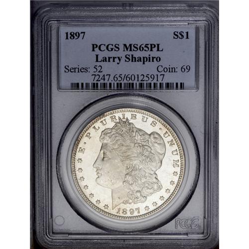 <B>1897<img border='0' src='http://www.heritagecoins.com/images/star.gif' width=10 height=10>$1> MS65 Prooflike PCGS.</B></I> Ex: Larry Shapiro. Dazzling fields and exactingly struck devices ensure the eye appeal of this lightly toned and attractively preserved Gem. A scarce Prooflike date. Population: 36 in 65, 7 finer (3/06). <BR><BR><B>Important notice:</B> Heritage usually auctions material at the rate of 200-250 lots per hour. On some occasions eBay Live bid software or the Internet may not be able to keep up with the pace of the auction. We recommend placing a realistic absentee bid now as insurance to avoid disappointment. Occasionally the auctioneer may eliminate or reject an eBay Live bid, and the auctioneer may also reopen a lot after the close of the eBay live bidding (usually because we missed an audience bid), and may reject your bid even if it shows you as the winning bidder. By bidding via eBay Live, you agree that Heritage may award the lot to another bidder at its sole discretion under the circumstances described above or any other reasonable circumstances. Since eBay bids are not shown to us until we open the lot on the floor, we treat those bids just like floor bids. In most cases the floor responds before the eBay bid is presented to us, due to Internet lag time, so for consistency we have made it a policy that floor bids are always considered first over tie eBay live bids. Also please note that all Heritage lots purchased through eBay Live carry a 20% Buyer's Premium. Please make sure you read the Terms and Conditions before you bid. This lot is being auctioned in conjunction with a live floor auction by Heritage Galleries & Auctioneers. All final auction and invoice information will be supplied by Heritage Galleries & Auctioneers, and all other information should be considered preliminary. Lot:3708 <BR><BR><B>Winning Notification and Billing:</B> After the FINAL session in this auction is complete, Heritage will send e-mail and snail mail invoices. This process normally takes several days. All final auction and invoice information will be supplied by Heritage Galleries & Auctioneers, and all other information should be considered preliminary. <BR><BR>This auction will be conducted on a live auction floor and over the Internet through eBay Live. If you choose to place an absentee bid, please take a moment to <font color='#0000ff'><u><a href='http://pages.ebay.com/liveauctions/help/before/laabsentee.html'>learn how eBay Live absentee bidding works</a></u></font><font color='#000000'>