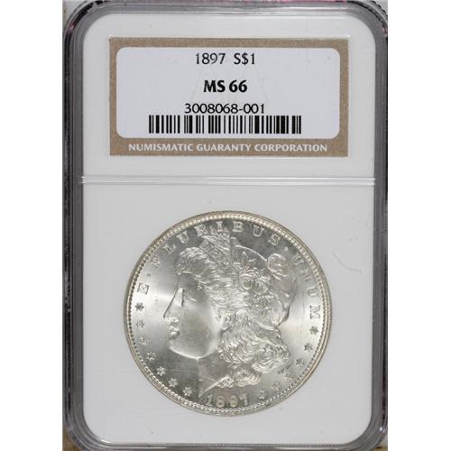 1897 S$1 MS66 NGC. Exquisite definition occurs on the