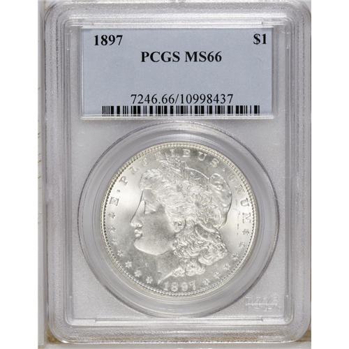 <B>1897 S$1 MS66 PCGS.</B></I> Lustrous surfaces display well impressed motifs and are well preserved. PCGS has certified only 15 pieces finer.<BR><BR><b>Shipping:</b> Coin/Currency (<a target="_blank" href="http://www.heritageauctions.com/common/shipping.php">view shipping information</a>)