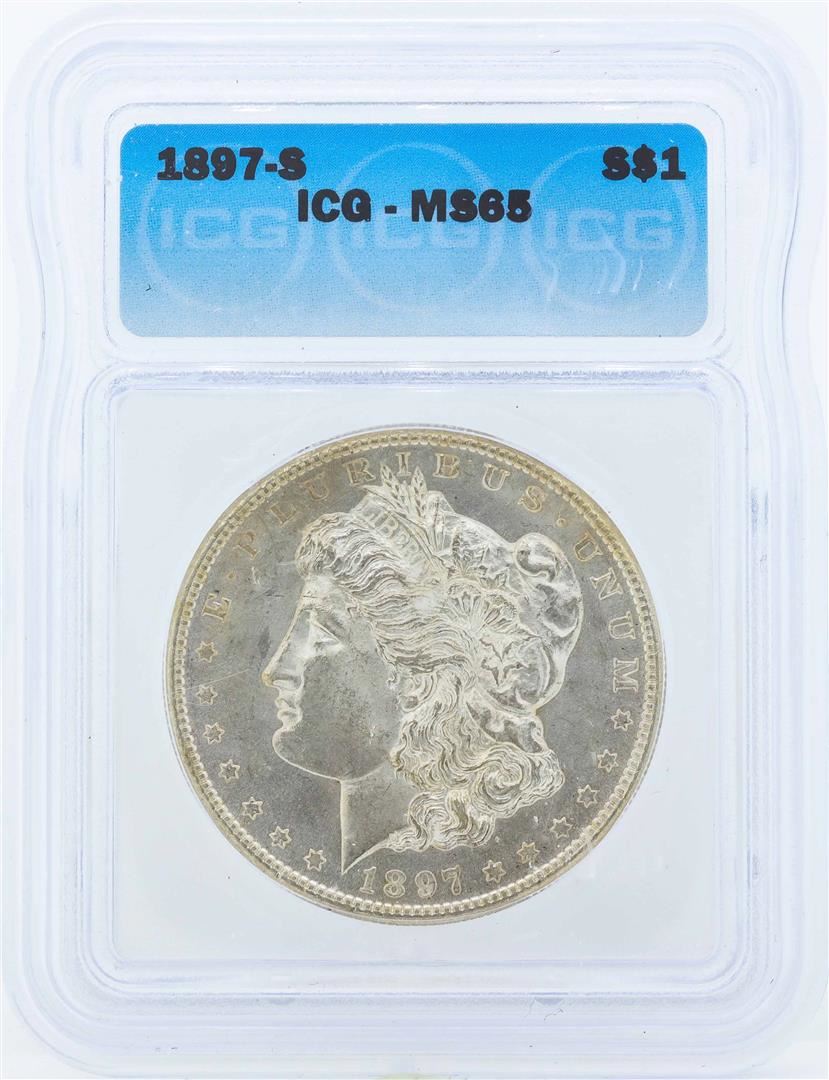 One 1897-S $1 Morgan Silver Dollar Coin ICG MS65. ICG Appraised.