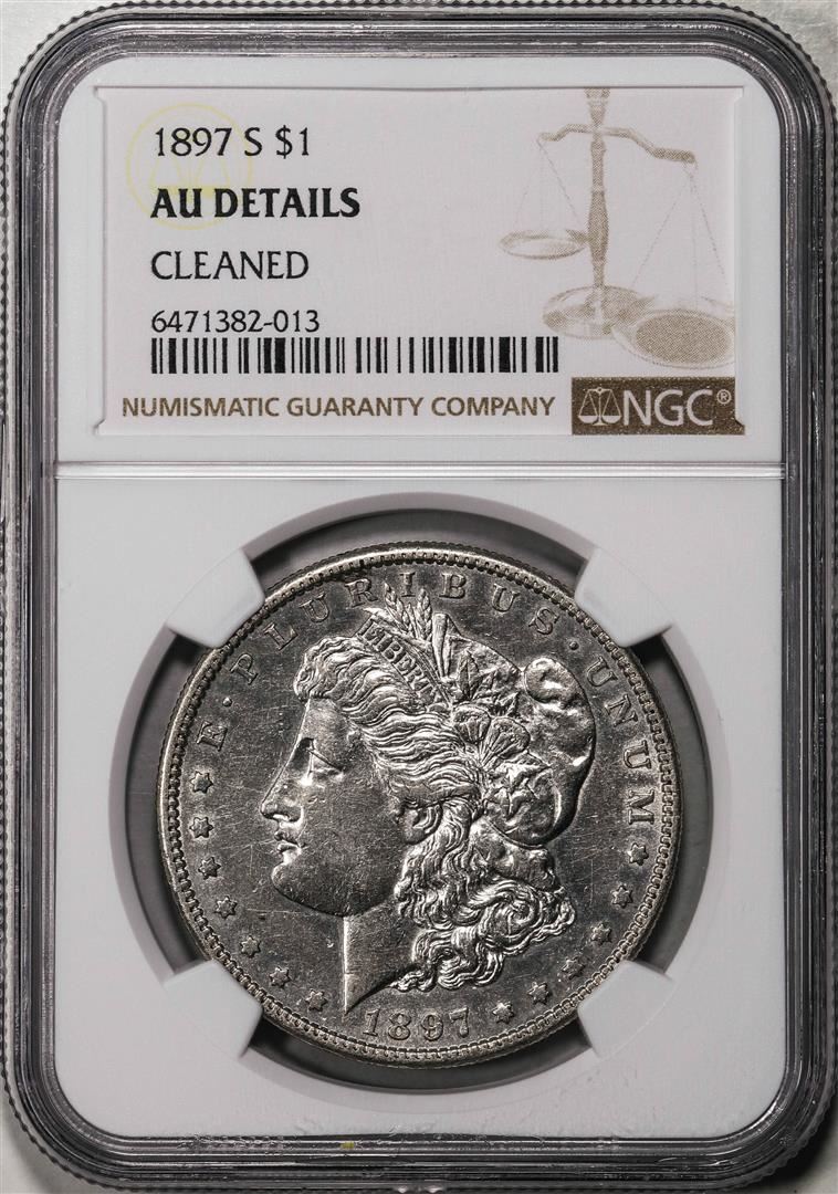One 1897-S $1 Morgan Silver Dollar Coin NGC AU Details Cleaned. NGC Certified.