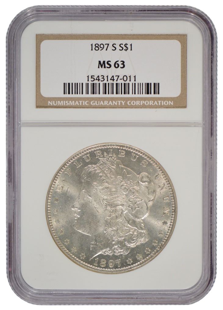 One 1897-S $1 Morgan Silver Dollar Coin NGC MS63.