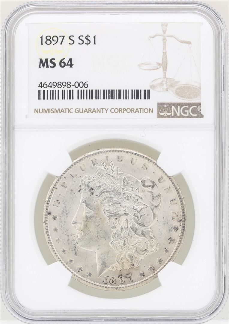 One 1897-S $1 Morgan Silver Dollar Coin NGC MS64. NGC Certified.