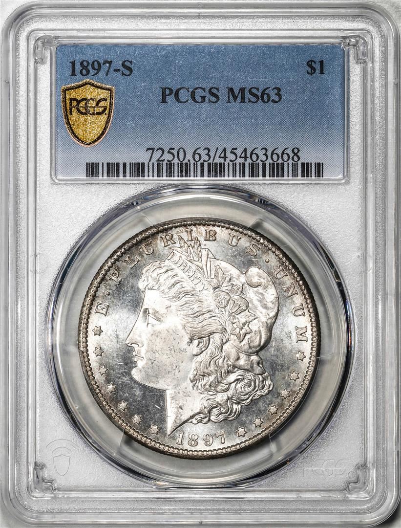 One 1897-S $1 Morgan Silver Dollar Coin PCGS MS63. PCGS Graded.