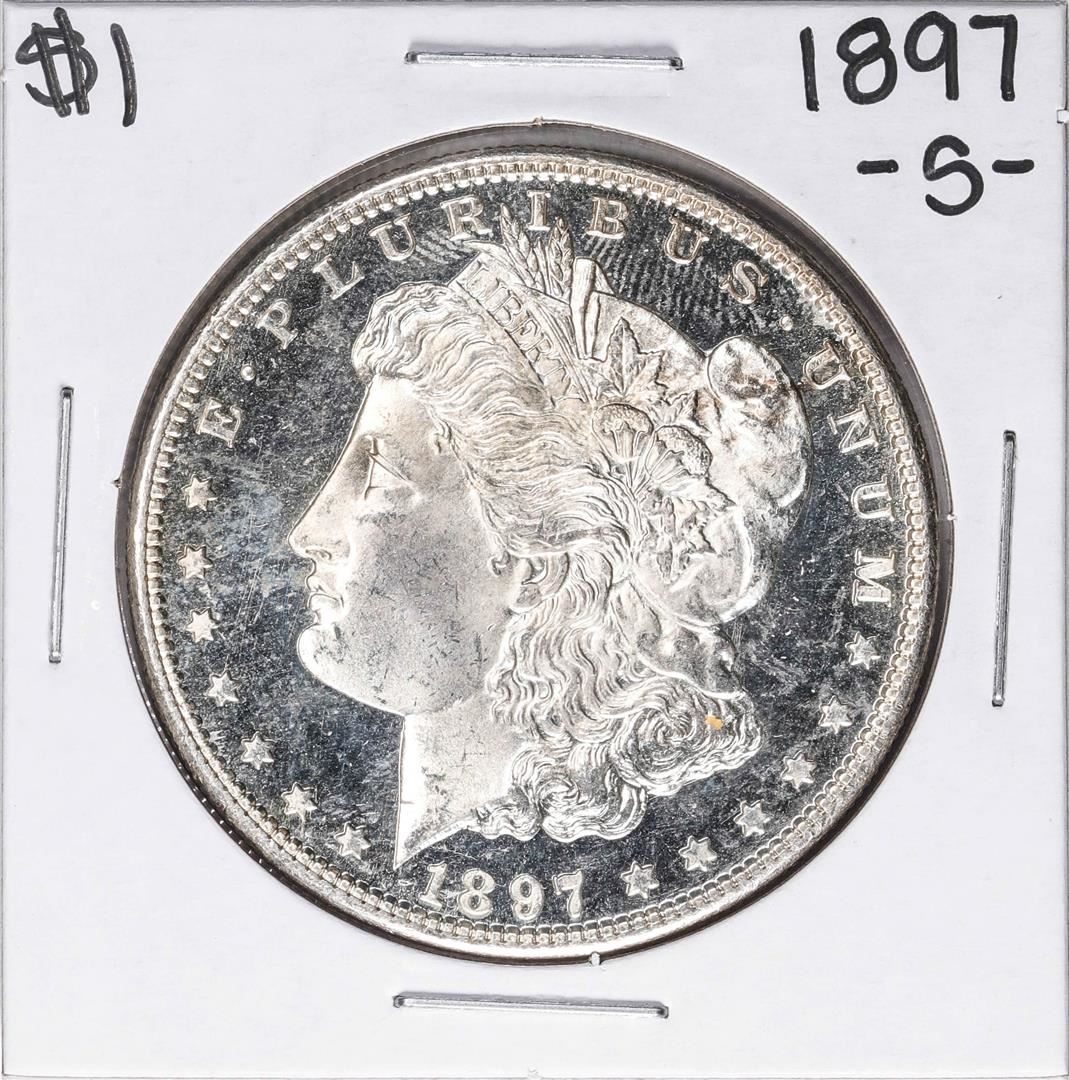 One 1897-S $1 Morgan Silver Dollar Coin.