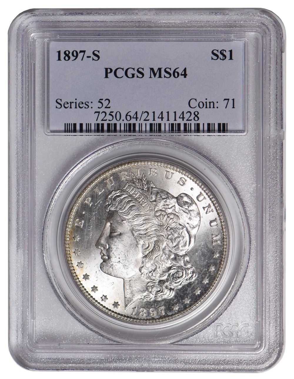 One 1897-S $1 Morgan Silver Dollar PCGS MS64.