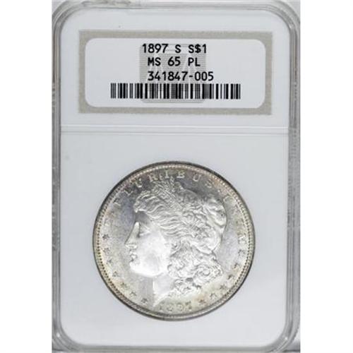 <B>1897-S $1 MS65 Prooflike NGC.</B></I> NGC Census: (101/21). PCGS Population (126/24). Numismedia Wsl. Price for NGC/PCGS coin in MS65: $620. (#7251)<BR><BR><B>Coin Engraver:</B> George T. Morgan<BR><BR><b>Shipping:</b> Coins & Currency (<a target="_blank" href="http://www.heritageauctions.com/common/shipping.php">view shipping information</a>)