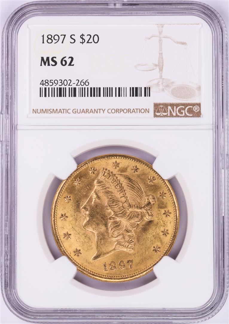 One 1897-S $20 Liberty Head Double Eagle Gold Coin NGC MS62. NGC Certified.
