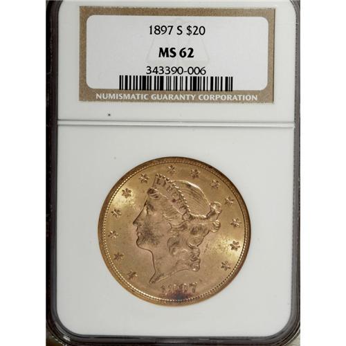 1897-S $20 MS62 NGC. NGC Census: (3579/1648). PCGS