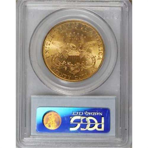 <B>1897-S $20 MS62 PCGS.</B></I> PCGS Population (2770/1601). NGC Census: (3647/1678). Mintage: 1,470,250. Numismedia Wsl. Price for NGC/PCGS coin in MS62: $740. (#9032)<BR><BR><B>Coin Engraver:</B> James B. Longacre<BR><BR><b>Shipping:</b> Coins & Currency (<a target="_blank" href="http://www.heritageauctions.com/common/shipping.php">view shipping information</a>)