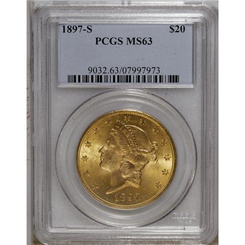 1897-S $20 MS63 PCGS. Nicely struck with highly lustro