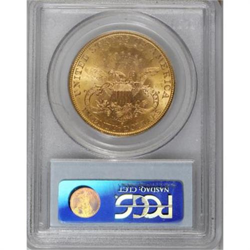 <B>1897-S $20 MS63 PCGS.</B></I> PCGS Population (1331/284). NGC Census: (1428/252). Mintage: 1,470,250. Numismedia Wsl. Price for NGC/PCGS coin in MS63: $1,140. (#9032)<BR><BR><B>Coin Engraver:</B> James B. Longacre<BR><BR><b>Shipping:</b> Coins & Currency (<a target="_blank" href="http://www.heritageauctions.com/common/shipping.php">view shipping information</a>)