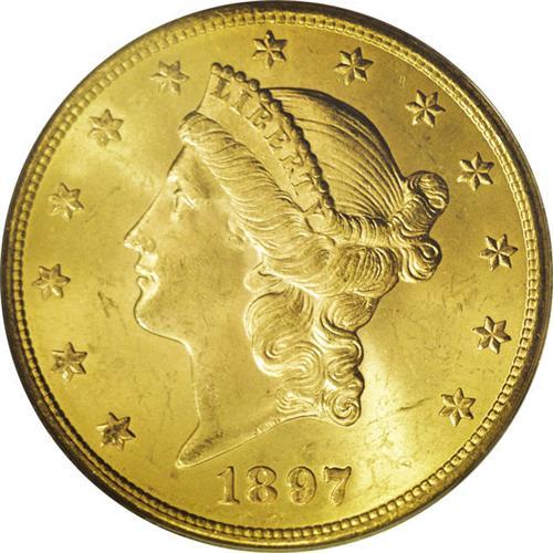 <B>1897-S<$20> MS64 PCGS.</B></I> A boldly impressed near-Gem that features the potent luster and olive-gold toning characteristic of the issue. The reverse is well preserved, and only faint grazes encompass the obverse. In 1897, the San Francisco Mint once again struck more double eagles than Philadelphia, but the race was closer than usual, with a separation of fewer than 90,000 pieces.