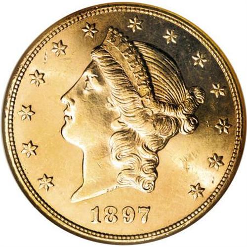 <B>1897-S $20 MS64 Prooflike NGC.</B></I> The surfaces of most 1897-S double eagles are heavily abraded. Choice examples are scarce, particularly those with Prooflike surfaces. This near-Gem Prooflike specimen exhibits lovely brass-gold surfaces that show exquisitely struck design elements. A few minor marks define the grade. Census: 1 in 64 Prooflike, 0 finer (11/07).<BR><I>From The New York Eye Appeal Collection, Part Three.</B></I><BR><BR><B>Coin Engraver:</B> James B. Longacre<BR><BR><b>Shipping:</b> Coins & Currency (<a target="_blank" href="http://www.heritageauctions.com/common/shipping.php">view shipping information</a>)