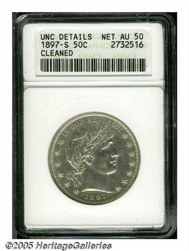 1897-S 50C --Cleaned--ANACS. Unc Details, Net AU5