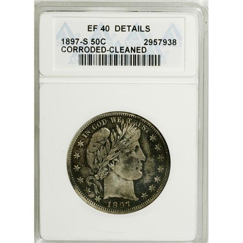 <B>1897-S 50C --Cleaned, Corroded--ANACS. XF40 Details.</B></I> NGC Census: (3/46). PCGS Population (5/55). Mintage: 933,900. Numismedia Wsl. Price: $635. (#6479)<BR><BR><b>Shipping:</b> Coins & Currency (<a target="_blank" href="http://www.heritageauctions.com/common/shipping.php">view shipping information</a>)