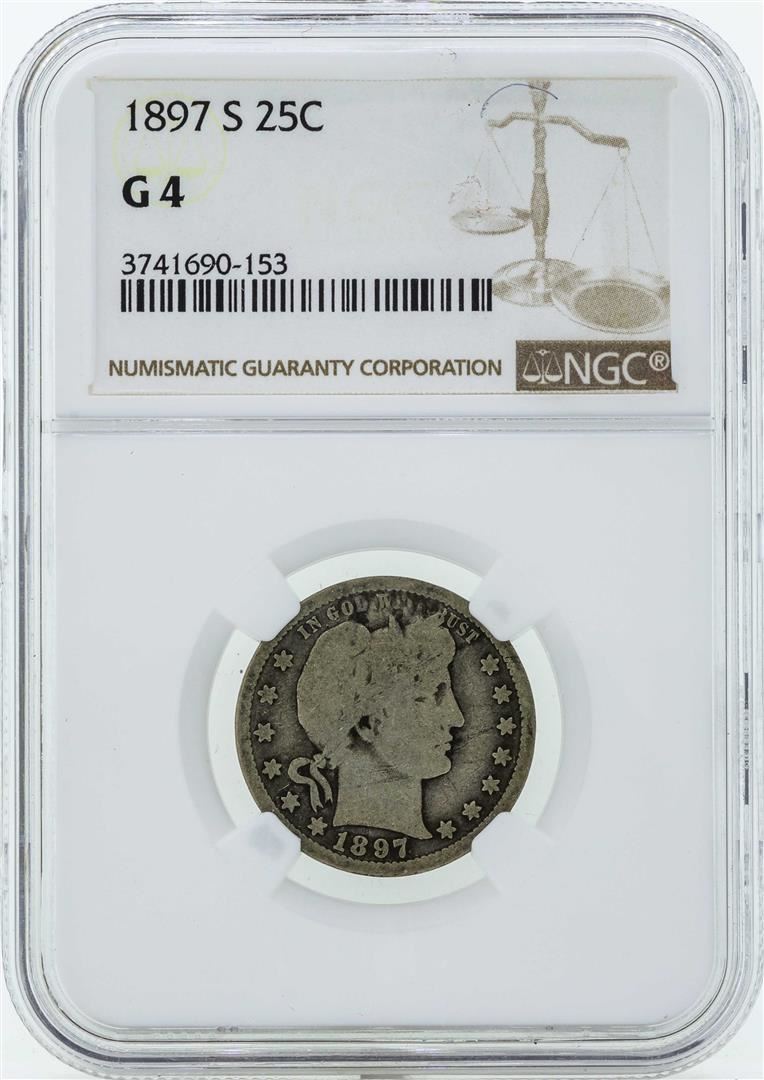 One 1897-S Barber Silver Quarter Coin NGC G4. NGC Certified.