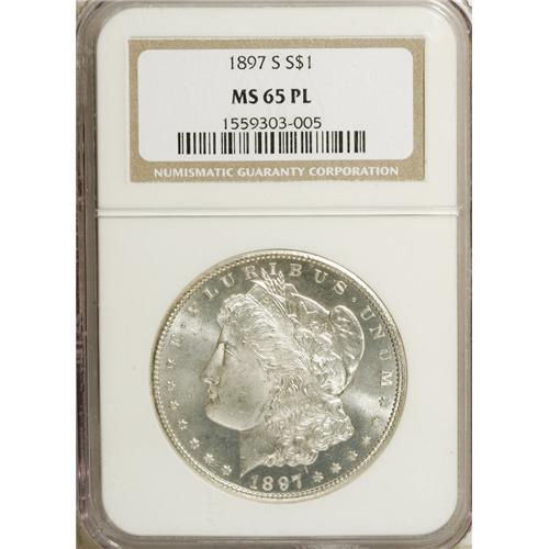 1897-S S$1 MS65 Prooflike NGC. This lustrous Gem is vi