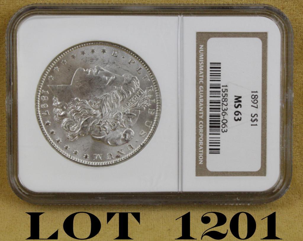 1897-S US Morgan dollar, NGC graded MS63. Est: $35 - $70
