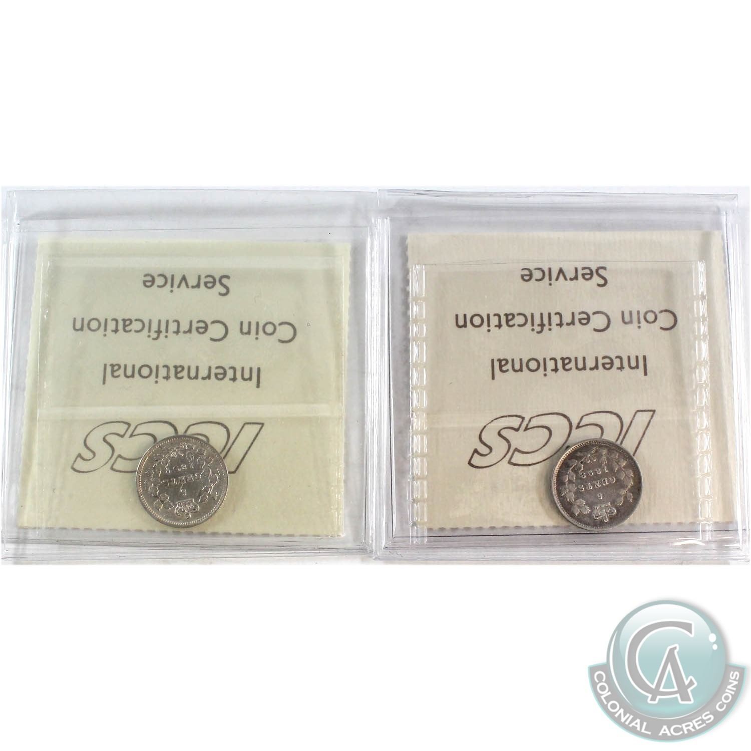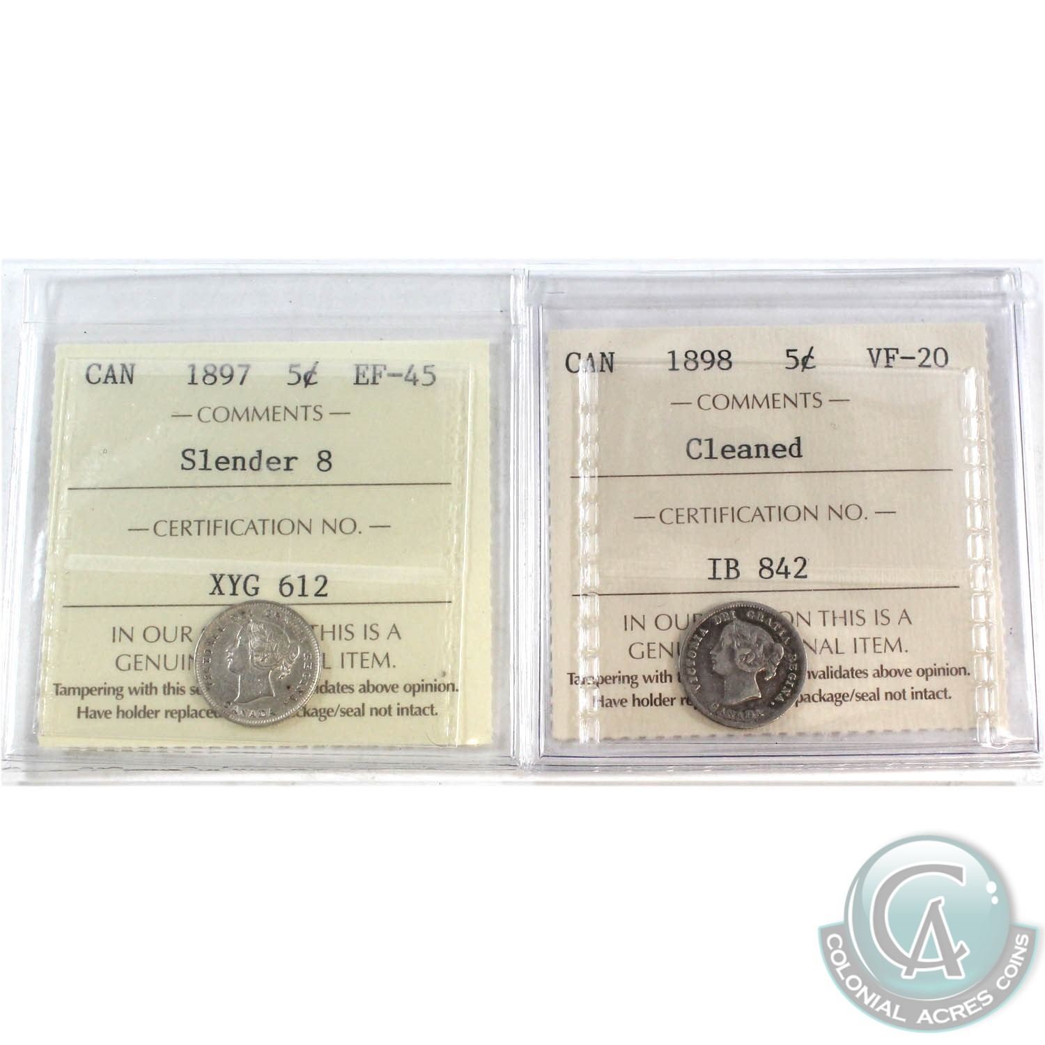 1897 Slender 8 5-cent EF-45 & 1898 5-cent VF-20 (cleaned). Both coins have been certified by ICCS. 2pcs.