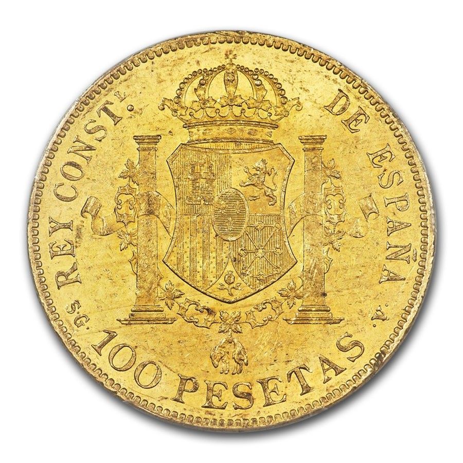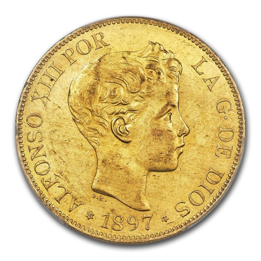 1897 Spain Gold 100 Pesetas Alfonso XIII MS-61 PCGS