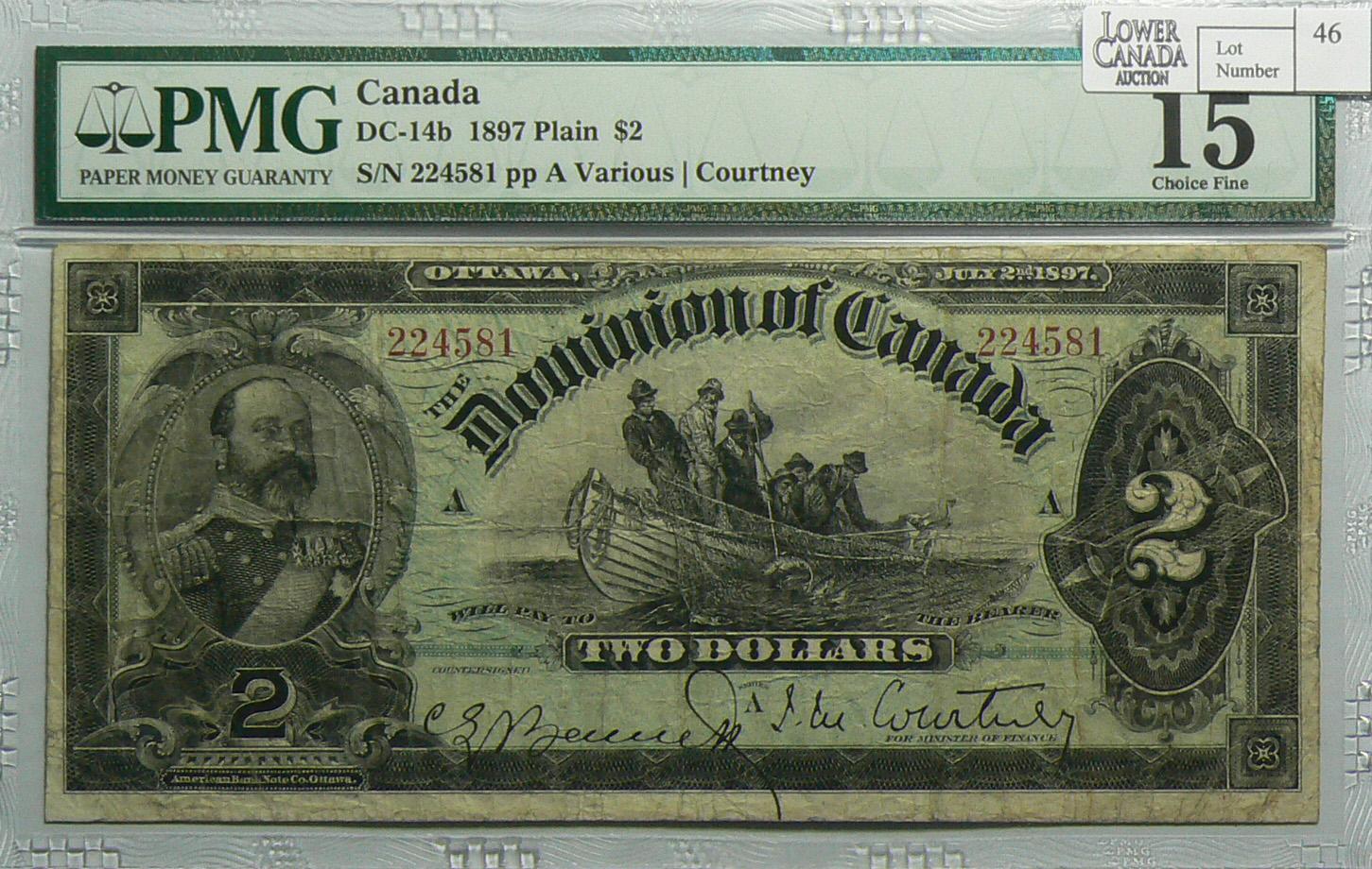 1897 Two Dollars, DC-14b, PMG F-15, Courtney, Series A, Letter A, serial 224581.