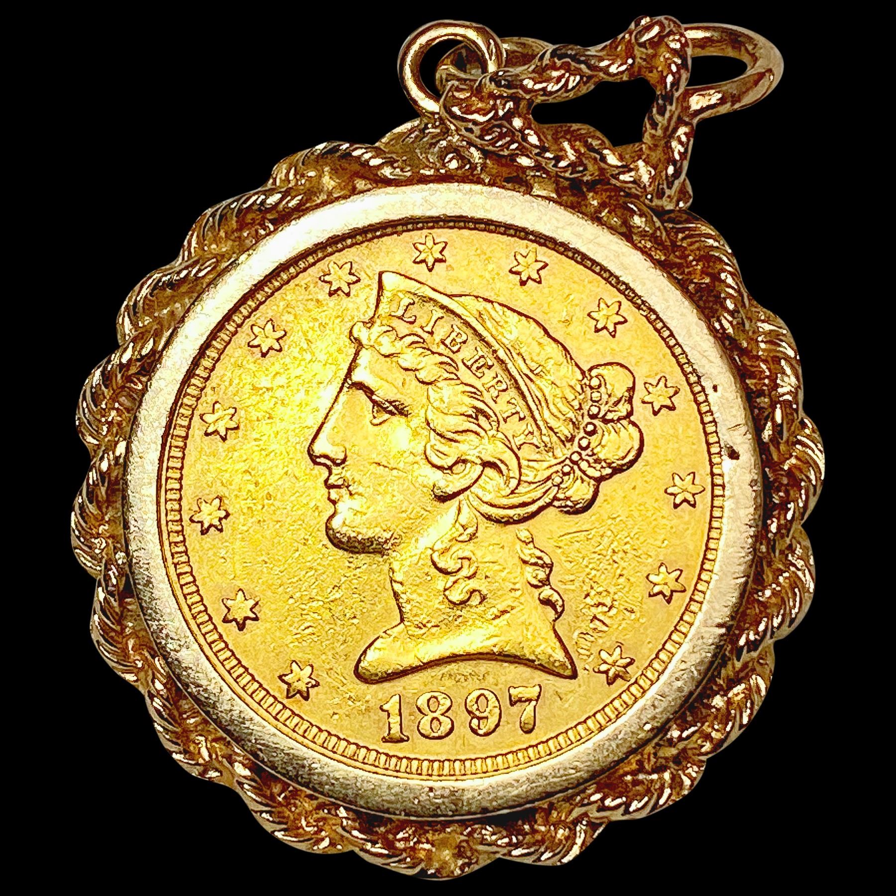 1897 US $5 Gold in 14k Bezel HIGH GRADE