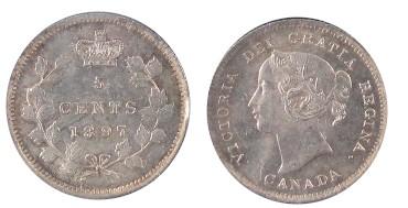 1897 Wide 8 5¢ ICCS MS65, fully struck with great lustre. Very nice.