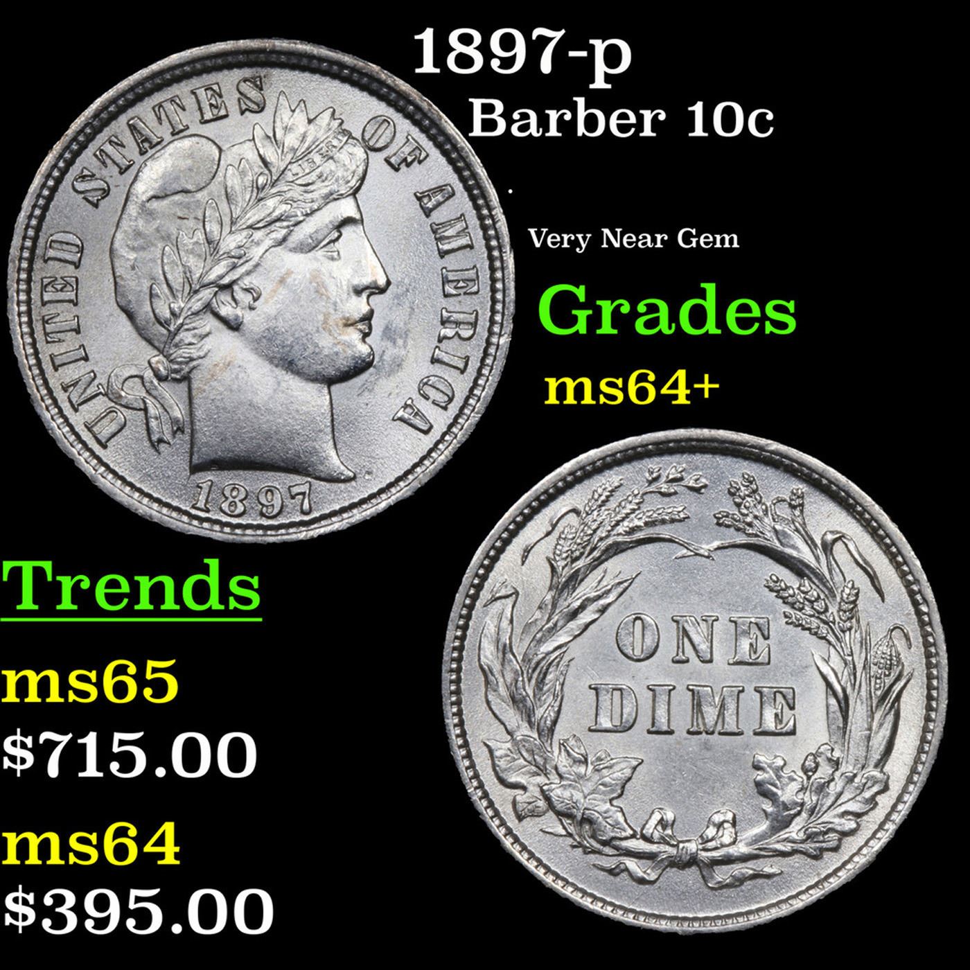 1897-p Barber Dime 10c Grades Choice+ Unc.