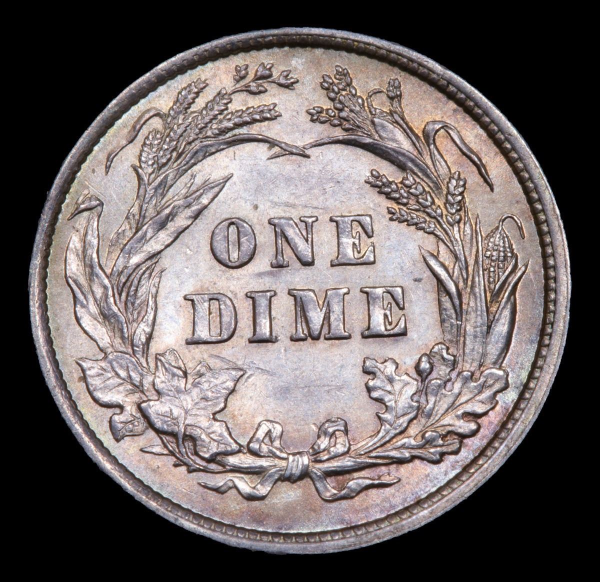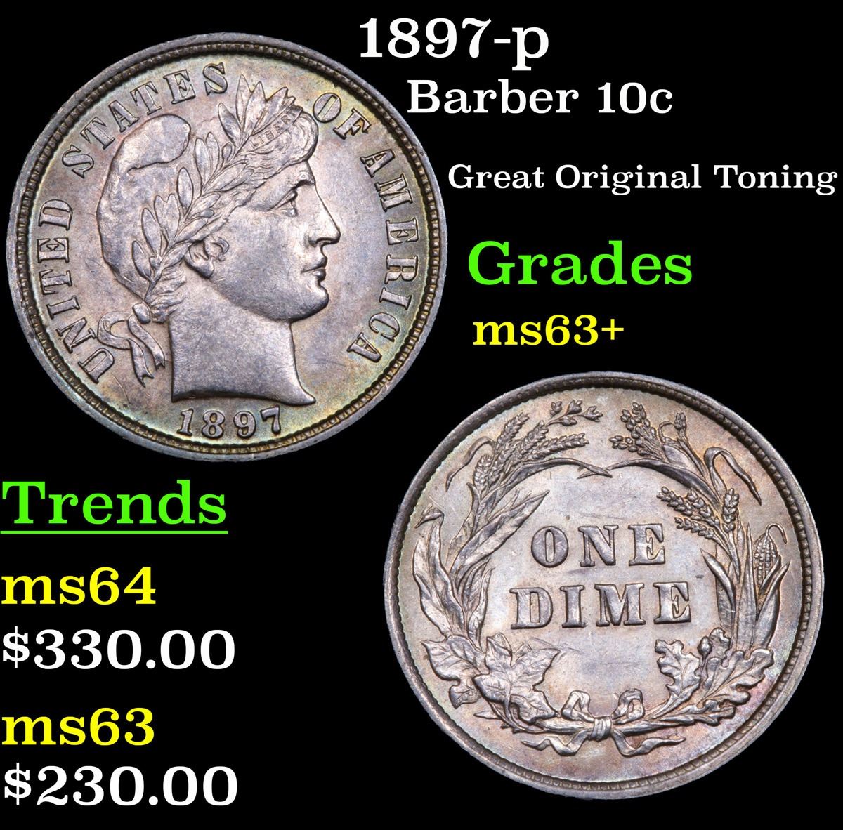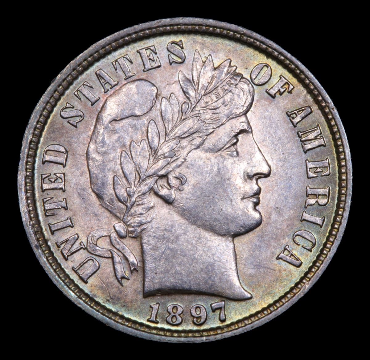 1897-p Great Original Toning . Barber Dime 10c Grades Select+ Unc.