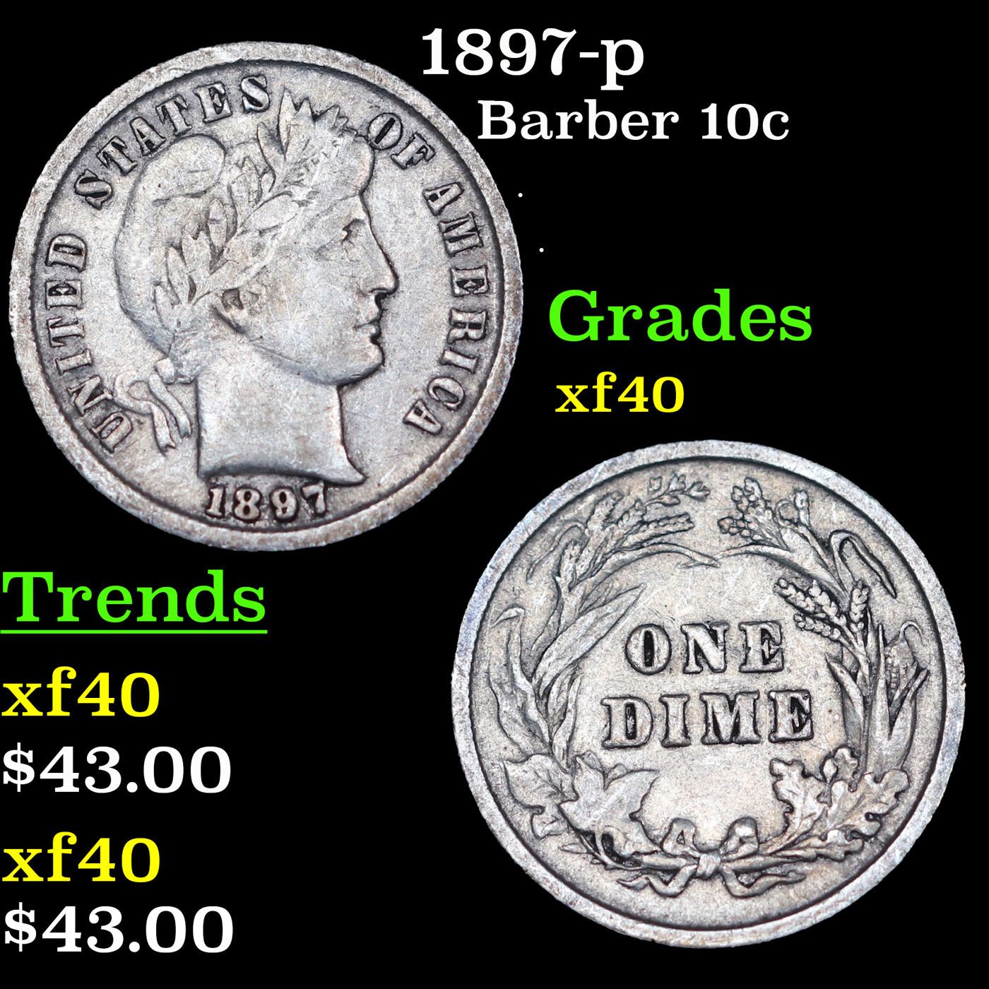 1897-p Barber Dime 10c Grades xf.