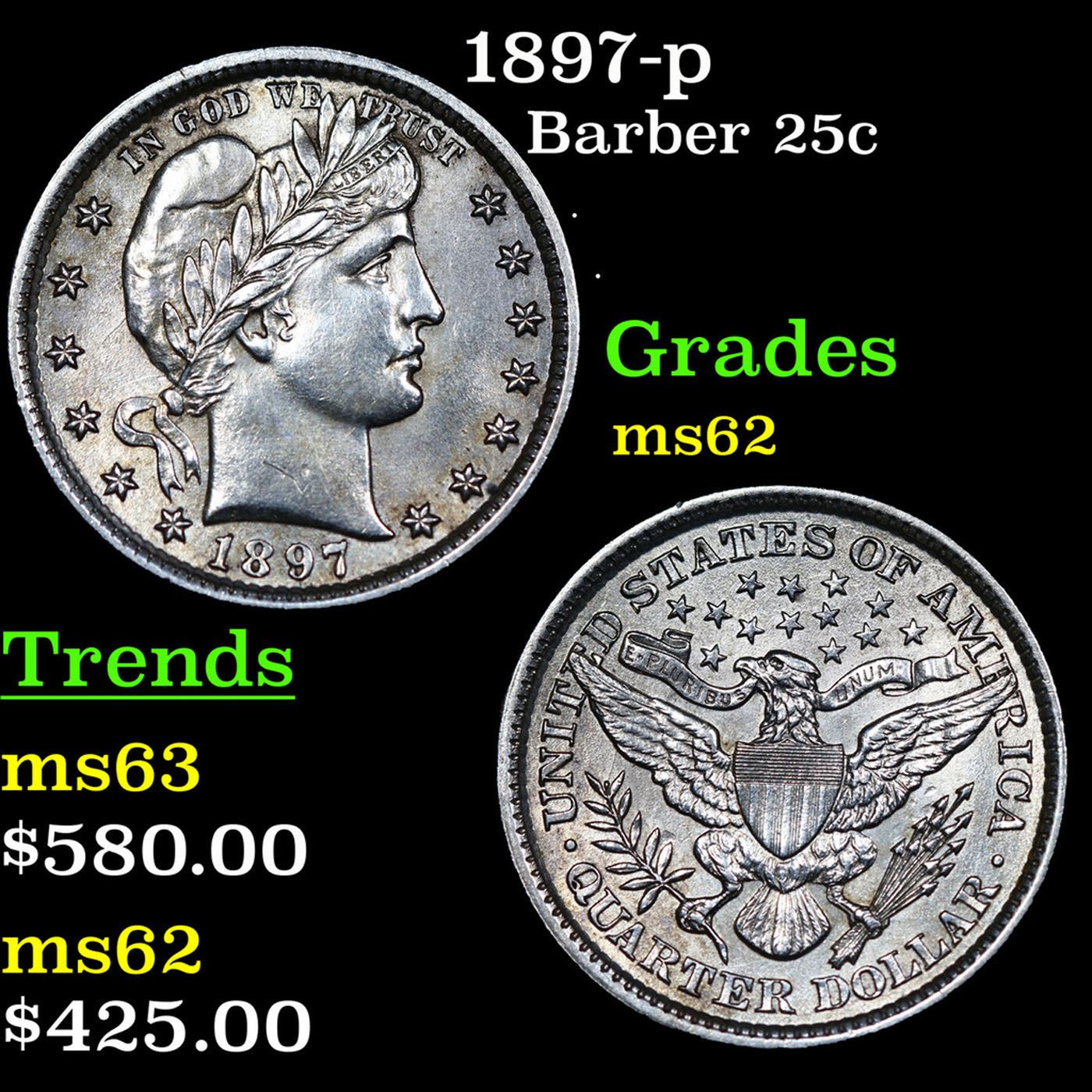 1897-p Barber Quarter 25c Grades Select Unc.