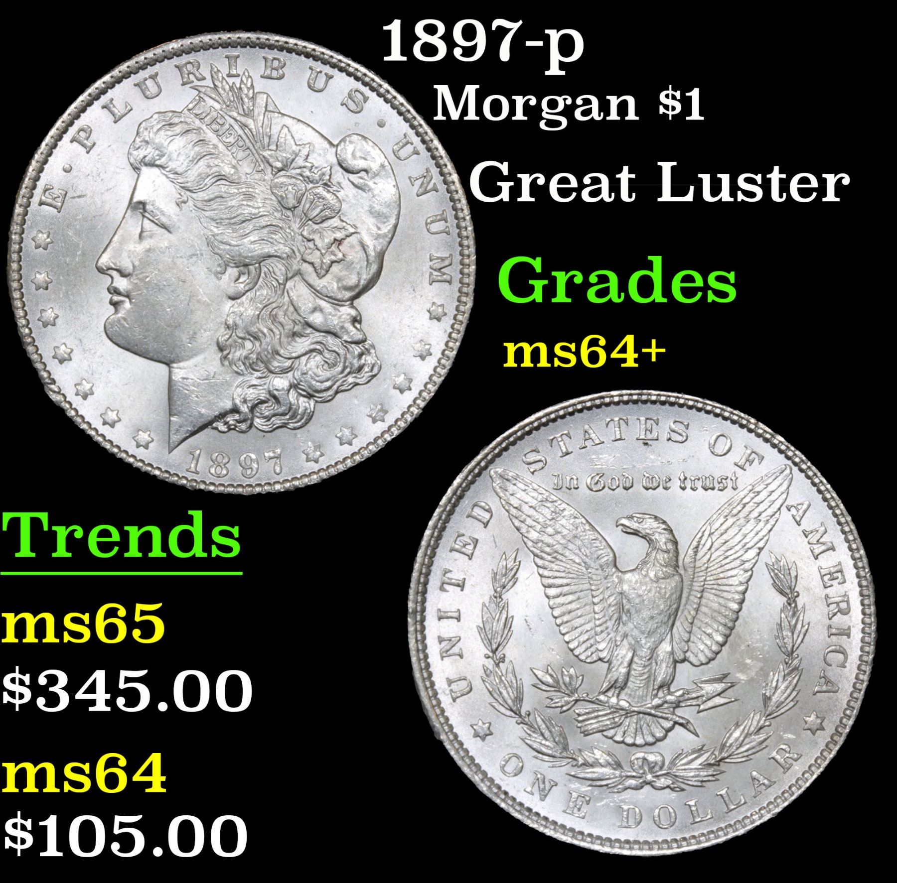 1897-p Morgan Dollar $1 Grades Choice+ Unc. Great Luster