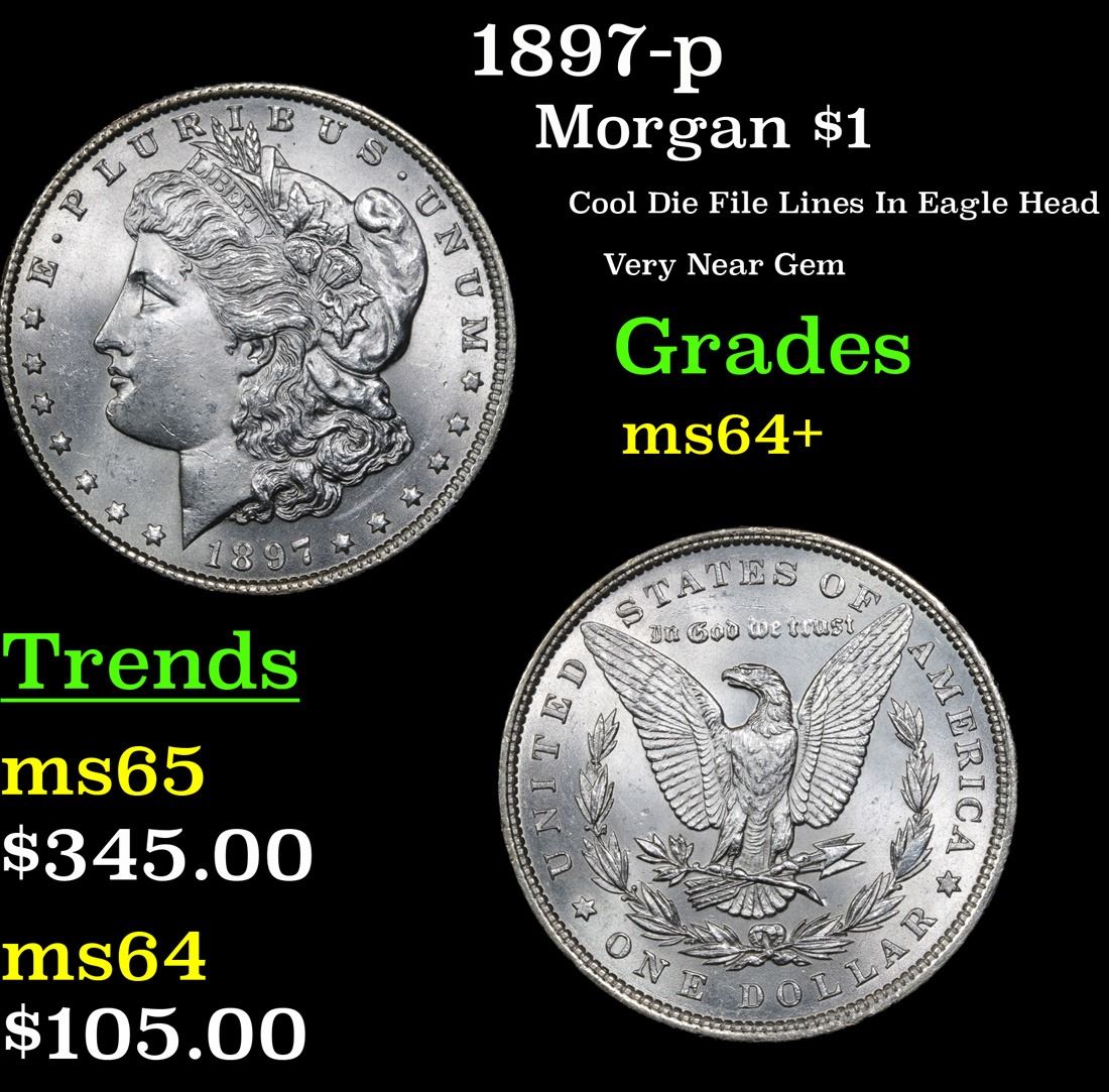 1897-p Cool Die File Lines In Eagle Head & Wing Very Near Gem Morgan Dollar $1 Grades Choice+ Unc.