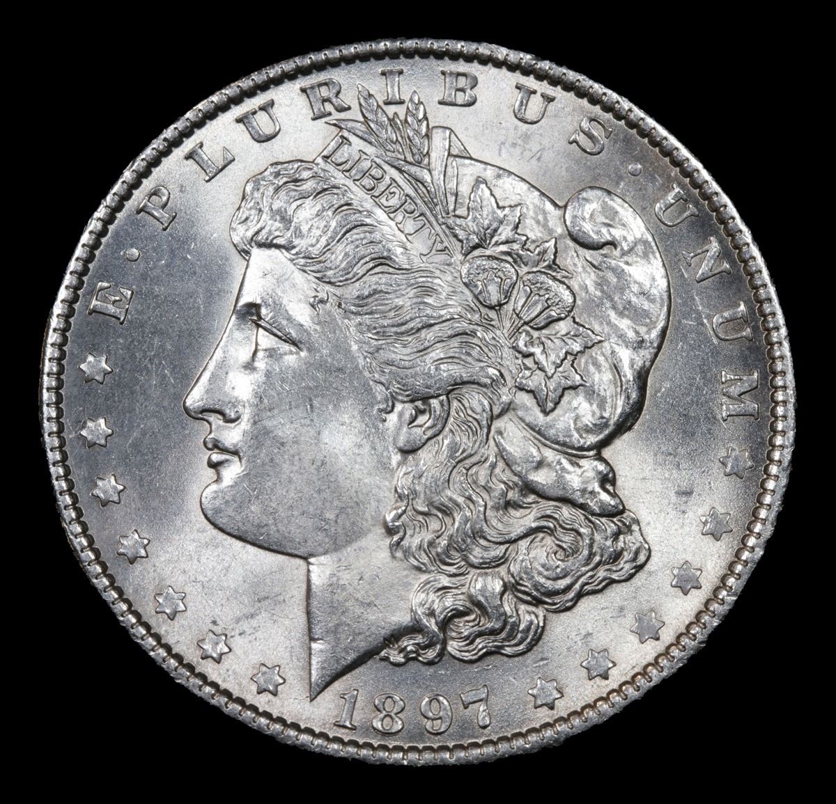 1897-p . Very Near Gem Morgan Dollar $1 Grades Choice+ Unc.