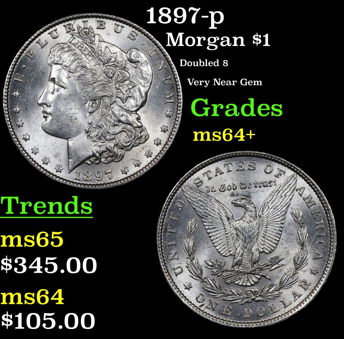1897-p Doubled 8 Very Near Gem Morgan Dollar $1 Grades Choice+ Unc.