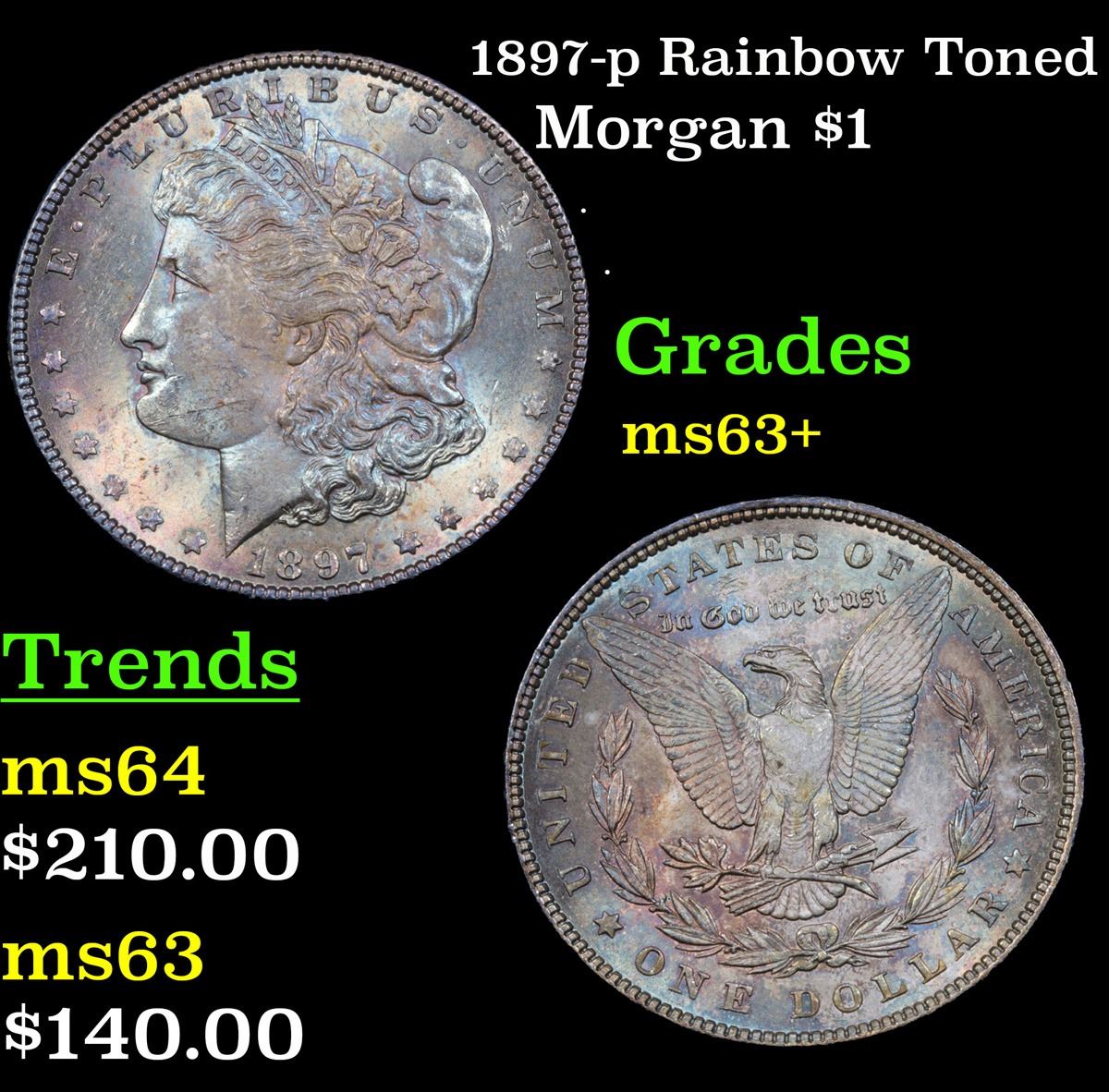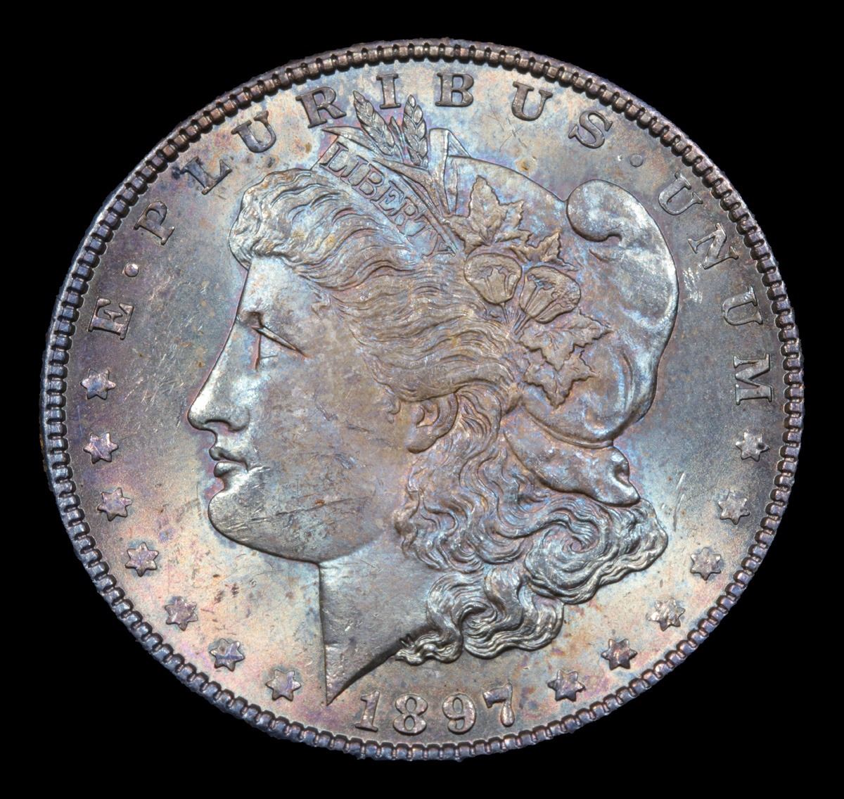 1897-p Rainbow Toned Morgan Dollar $1 Grades Select+ Unc.