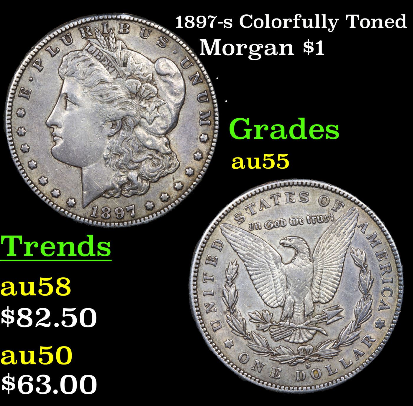 1897-s Colorfully Toned Morgan Dollar $1 Grades Choice AU.