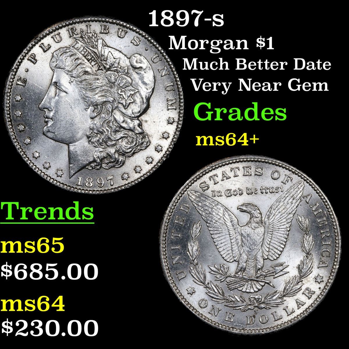 1897-s Much Better Date Very Near Gem Morgan Dollar $1 Grades Choice+ Unc.