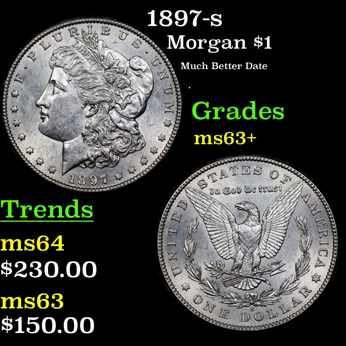 1897-s Much Better Date . Morgan Dollar $1 Grades Select+ Unc.