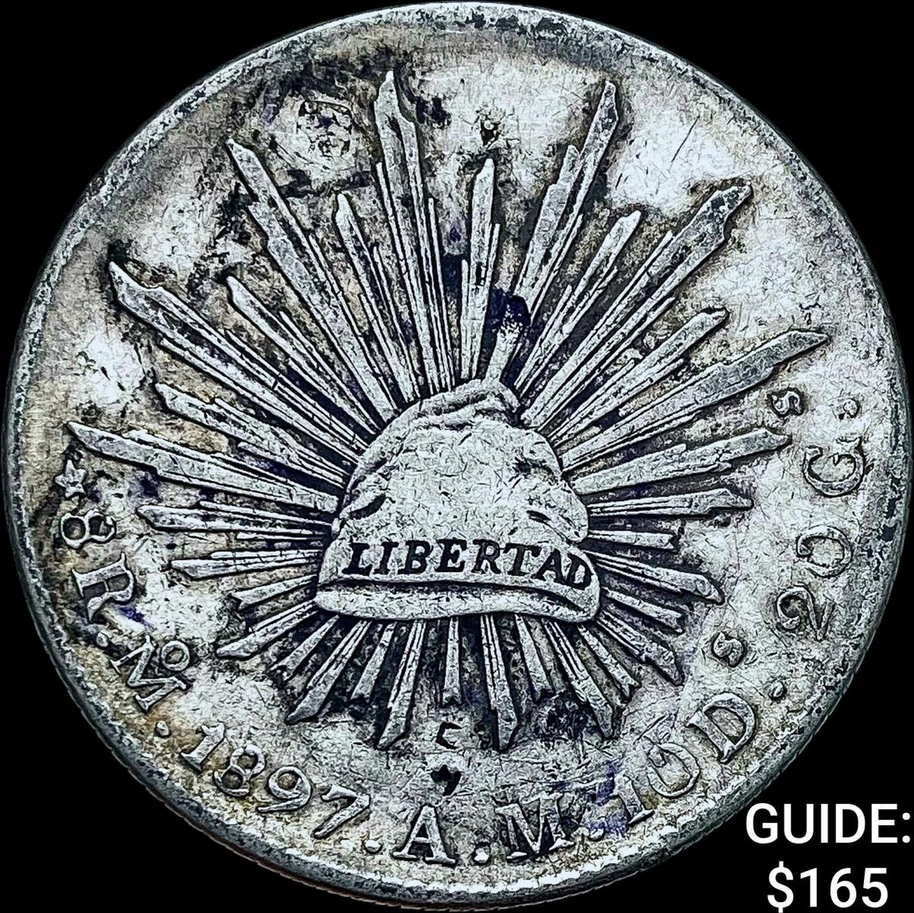 1897Mo AM Mexico Silver 8 Reales Cap and Rays NEARLY UNCIRCULATED