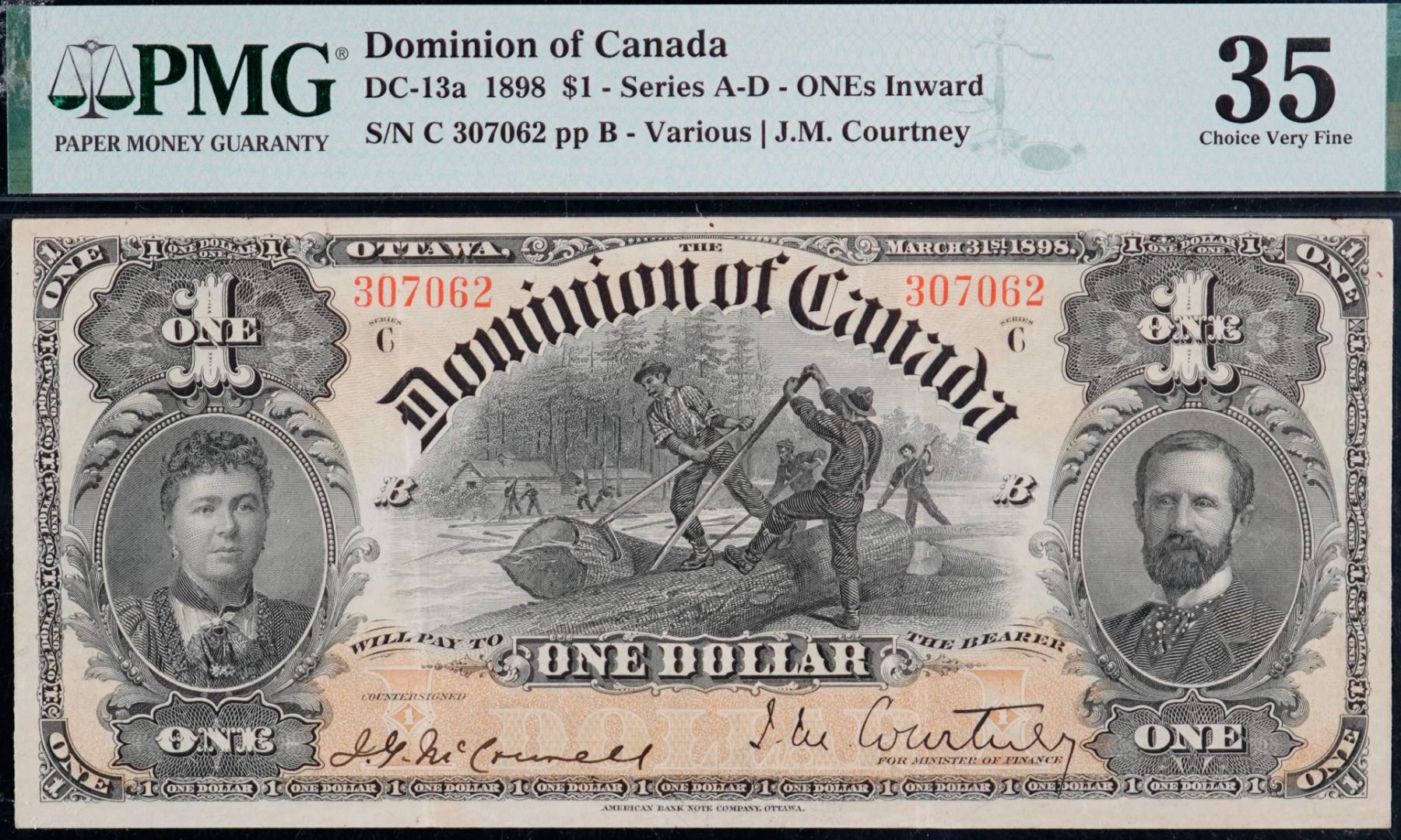 1898 $1 DC-13a #307062 PMG Choice Very Fine-35 minor rust, A bright example.