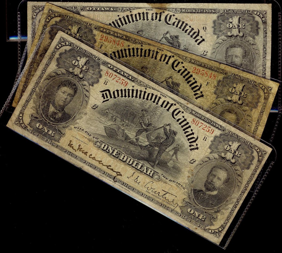 1898 $1 DC-13a, b & c. Lot of three notes. Complete 1898 s