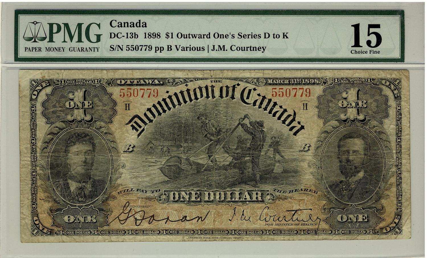 1898 $1 DC-13b #550779, PMG CH F15.