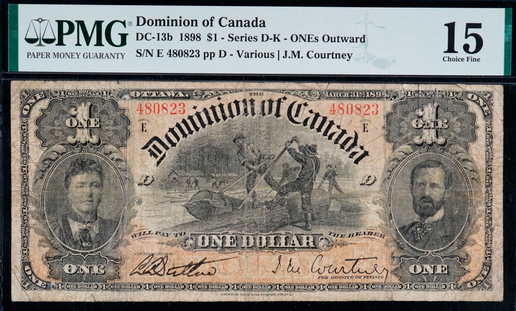 1898 $1 DC-13b #975913 "Series I" PMG Choice Very Fine-25 Brright example with four large even margins