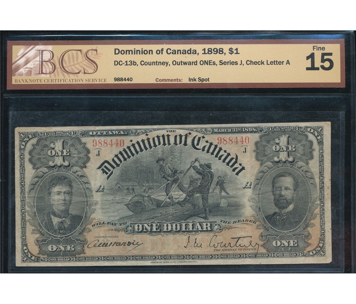 1898 $1 DC-13b #988440, BCS F15. Designated with ink spot.