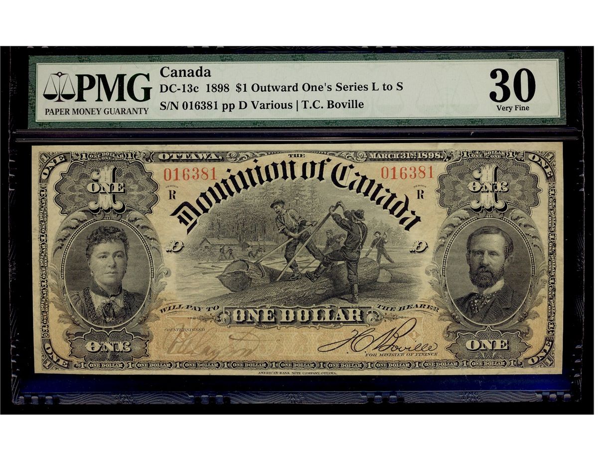 1898 $1 DC-13c #016381 PMG VF30, a nice and choice example.