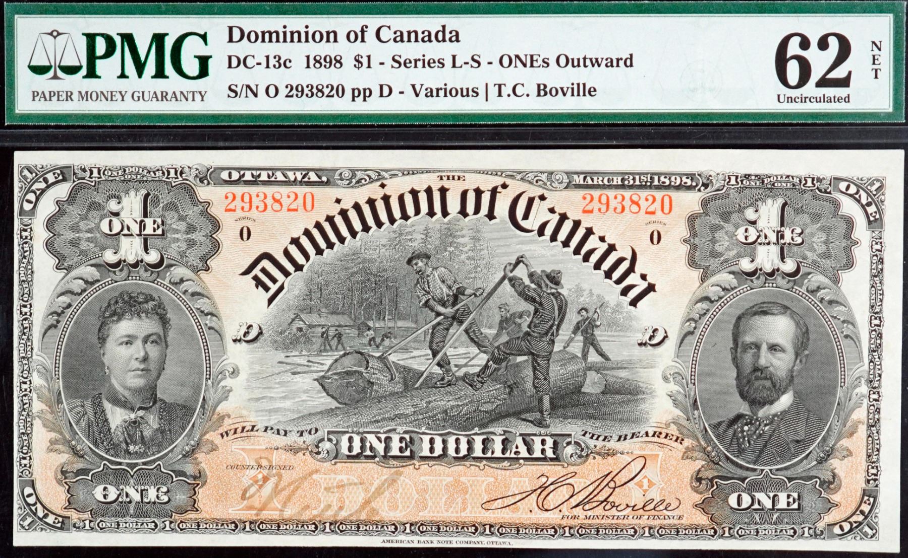 1898 $1 DC-13c #293820 PMG Choice Uncirculated-62 Minor repair. A bright, crisp and original example. Very scarce and not often seen and offered in this condition.