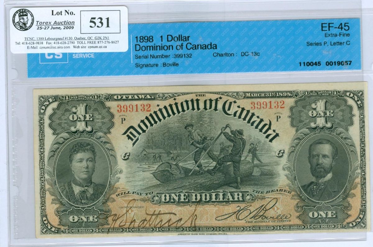 1898 $1 DC-13c #399132 CCCS EF45. A nice, clean and sharp example. Looks much better.